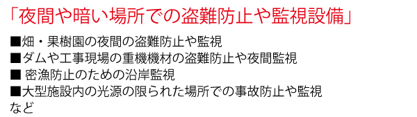 □高感度監視カメラ…夜間や暗い場所での盗難防止や監視設備向け