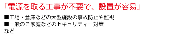 ・施工時に電源を取るための工事などが必要なく、設置が容易になります。