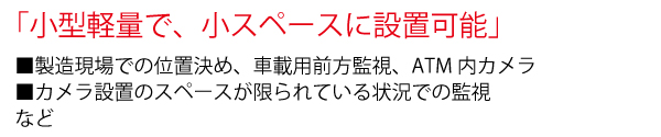 ・レンズ一体型で小型軽量のため、機器に組込んだり、少ないスペースに設置する際に活躍します。