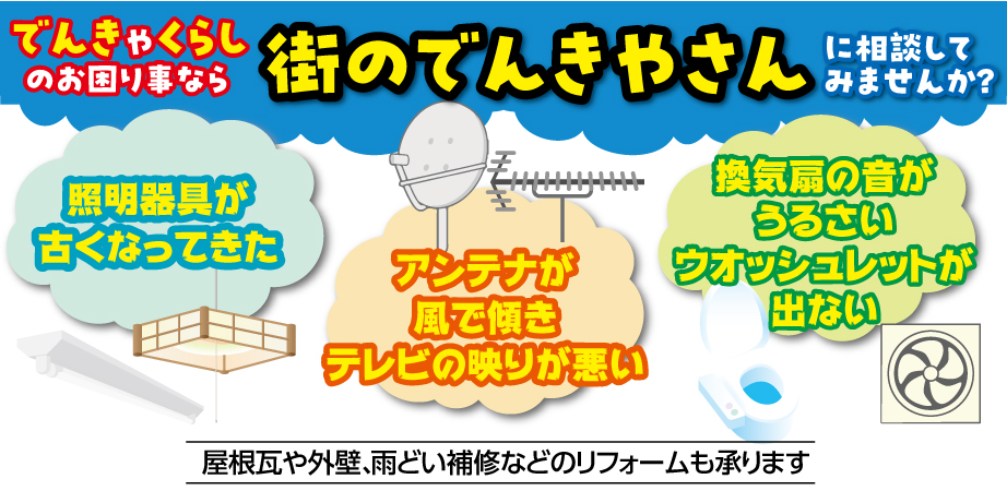 アンテナ設置・交換工事 強風でアンテナが倒れた、テレビの映り悪い、BS・CS放送を見たい、古いアンテナを新しくしたいなどアンテナの交換・取付など、どんなことでも当社スタッフまで気軽に相談下さい。 詳細を確認する